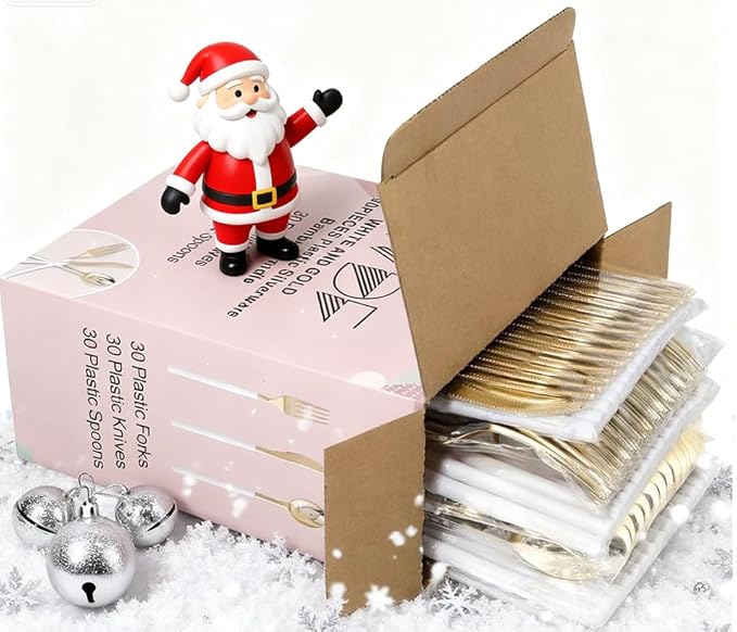 - DISPOSABLE DINNERWARE FOR 30: These gold disposable cutlery includes 30 knives, 30 forks, and 30 spoons. The perfect choice for an exquisite party of 30, comfortable to hold with super thick handle, great texture. Perfect for any special occasion and impress your guests