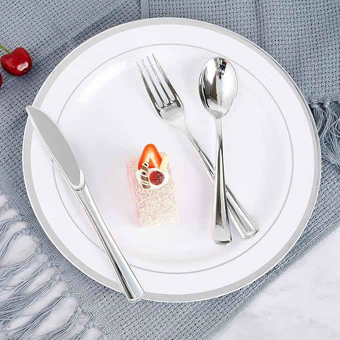 - Disposable and Convenient: Our silver plastic cutlery set is the perfect disposable utensil for all occasions, including weddings, birthdays, anniversaries, and especially barbecues; There is no worry about washing dishes at the end of the events