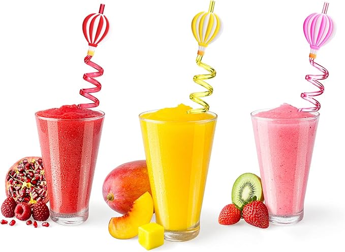 - UNIQUE DESIGN - Packed with 25 hot air balloon patterned curly straws in 5 different design styles, 5 straws in each style, 5 colors, attractive and creative, suitable for kids and adults. The color is rich, so it can meet the needs of people who like different color silly straws.