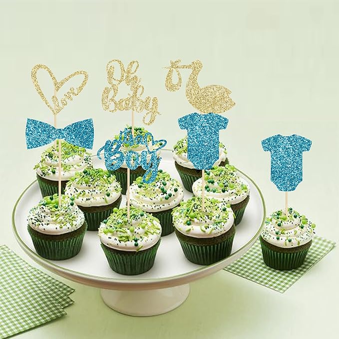 - 👦Premium Material: These glitter oh baby it's a boy cupcake toppers are made of high quality paper and food-grade toothpick, very safe to put them on cakes, cupcakes, ice cream, fruits, pie, dessert, cheese or any dish and food appetizer you want to decorate.