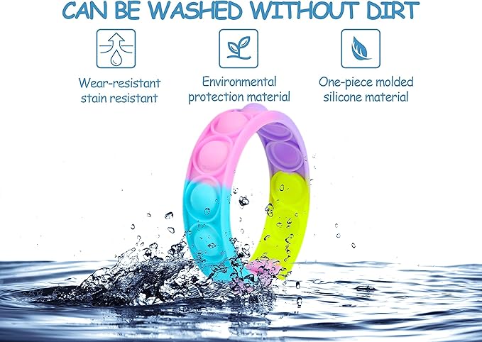 - 【Multiple Application】:This push wristband bubble pop are great as party favors, classroom prizes and school supplies prizes for students, gift bag fillers, and Halloween Christmas Valentine Birthday gifts for kids and adults.