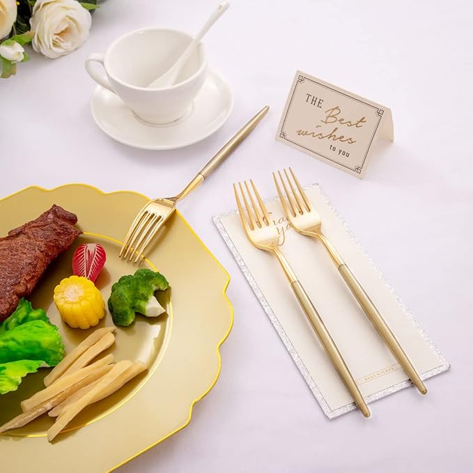 - Color : 102PCS Gold Plastic Cutlery with Gold Handle