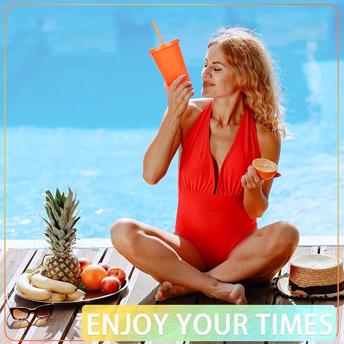 - Reliable Material: the lid and the cup of these plastic tumblers with lids and straw is made of quality PP material, safe, sturdy and reliable, the cup body designed with a non slip brush, easy and comfortable to handle
