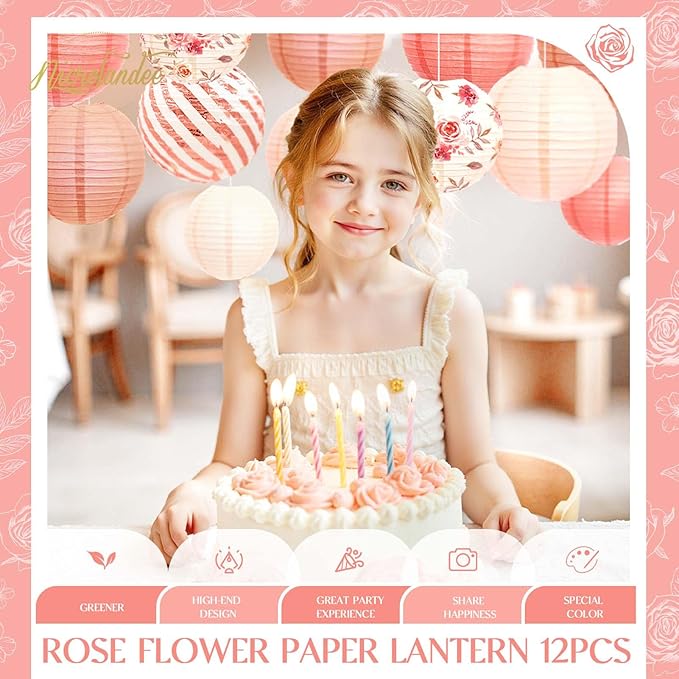 - 🌸PAPER LANTERNS SETS CONTENT: Rose gold paper lanterns sets come with 12pcs paper lanterns to hang up in your party, they size include 12inch 4pcs, 10inch 5pcs and 8inch 3pcs. *LED lights not included.