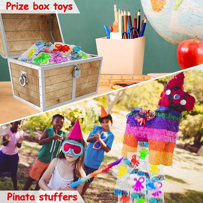 - 【Awesome Kid Prizes Supplies】Our stretch mini bulk toys are individually wrapped with an assortment of colors. Great as goodie bag stuffers, return gifts for kids birthday, stocking stuffers, treasure chest toys for classroom, prize box toys for kids classroom, piñata fillers stuffers, classroom prizes elementary, fall stuffer party favors bulk gift bag and party favor for boys and girls.