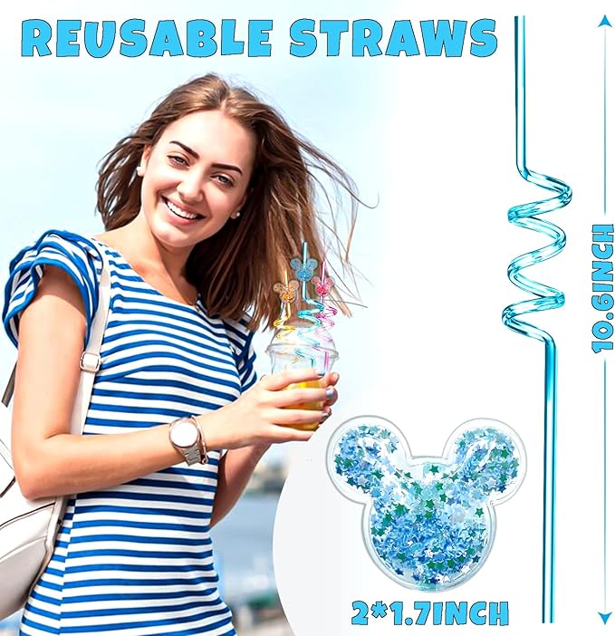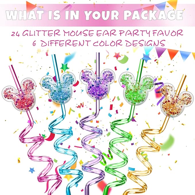 24Pcs Glitter Mouse Straws for Kids Birthday Party Favors Supplies Decorations Crazy Reusable Drinking Straws for Theme Birthday Oh Twodles Party
