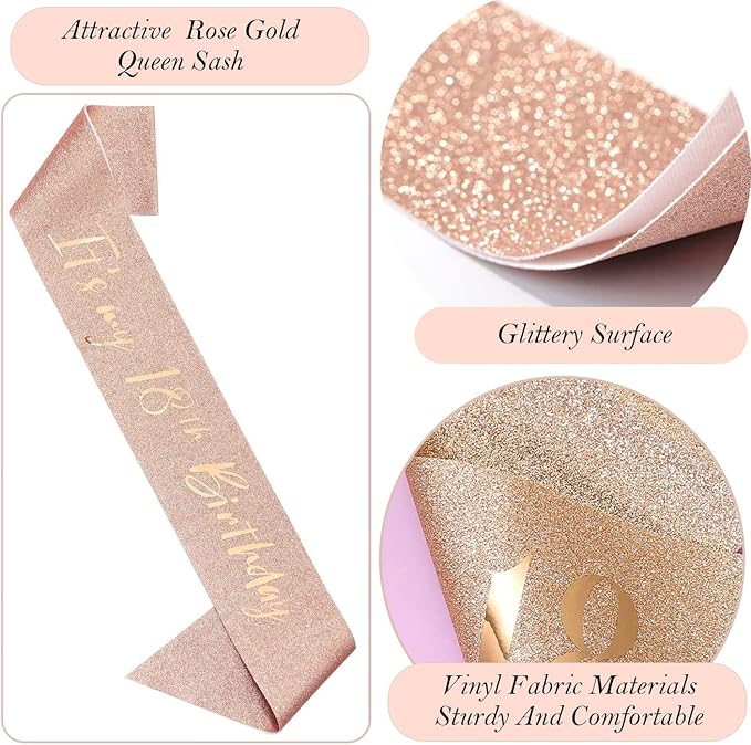 - Birthday Girl Sash: Our 18th birthday sash is made of high quality glitter fabric with foil “It’s my 18th birthday” lettering . The sash is in 63 inch length and comes with a gold charm pin that you can easily adjust the length you need.