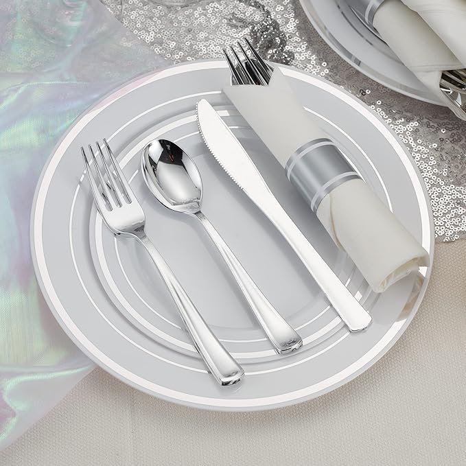 - Elegant for Any Event: With a sleek metallic silver finish, our pre rolled napkin cutlery set adds elegance to any occasion, including birthdays, baby showers, and outdoor parties.