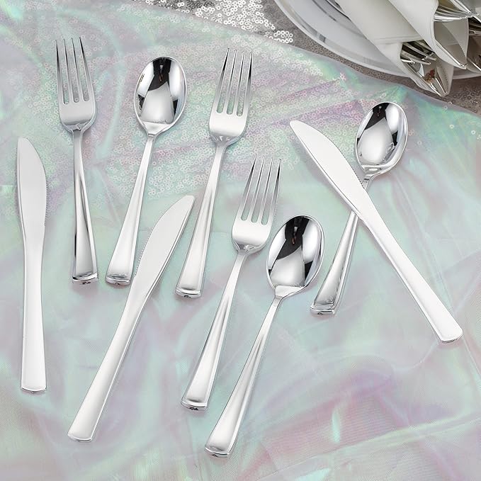 - Durable & Sturdy: Heavy-duty plastic utensils set resists bending, cracking, or scratching. Perfect for single-use or reusable after washing. Not suitable for microwave or dishwasher.