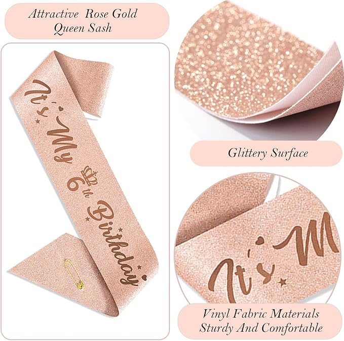 - Included Components : Crown, Sash, Cake Topper, Number Candle, Pearl Pin, Balloon