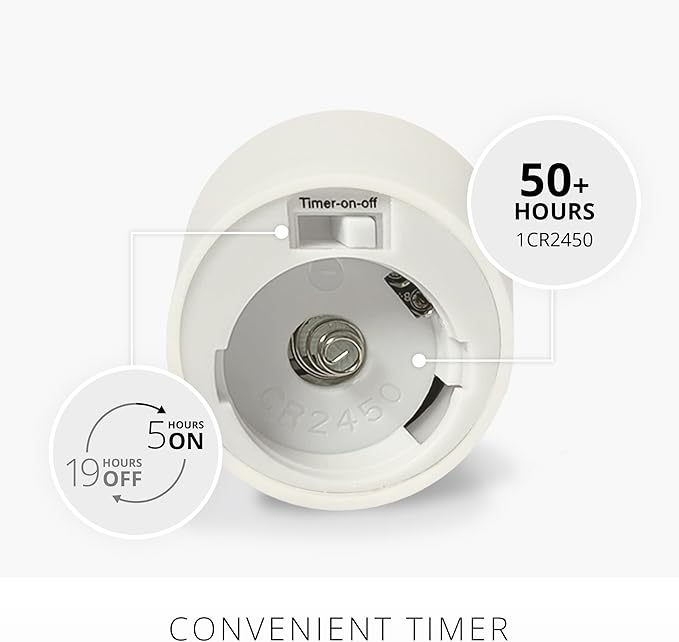 - Each candle uses 1 CR2450 button battery, which will give you 50 hours total runtime before needing to be replaced. When used with the automatic timer, you'll only have to replace the batteries a few times during the whole holiday season, from Halloween to New Year's. That makes these votive candles a beautiful decorating choice that is easy on the wallet for long-term use.