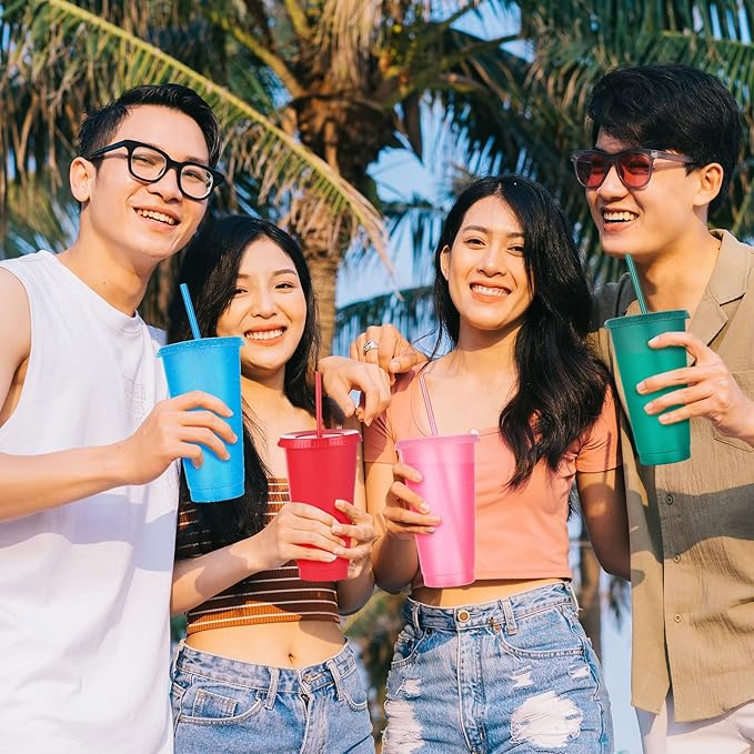 - Reliable Material: the lid and the cup of these plastic tumblers with lids and straw is made of quality PP material, safe, sturdy and reliable, the cup body designed with a non slip brush, easy and comfortable to handle
