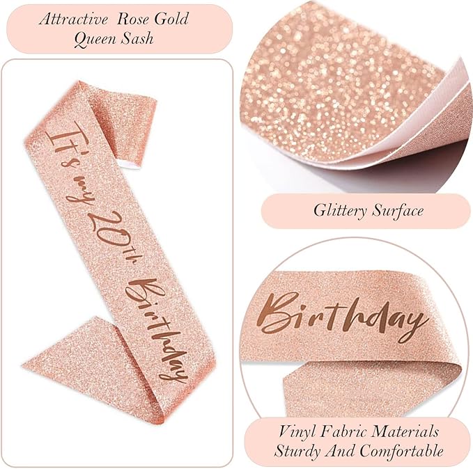 - Birthday Girl Sash: Our 20th birthday sash is made of high quality glitter fabric with foil “It’s my 20th birthday” lettering . The sash is in 61 inch length and comes with a gold charm pin that you can easily adjust the length you need.