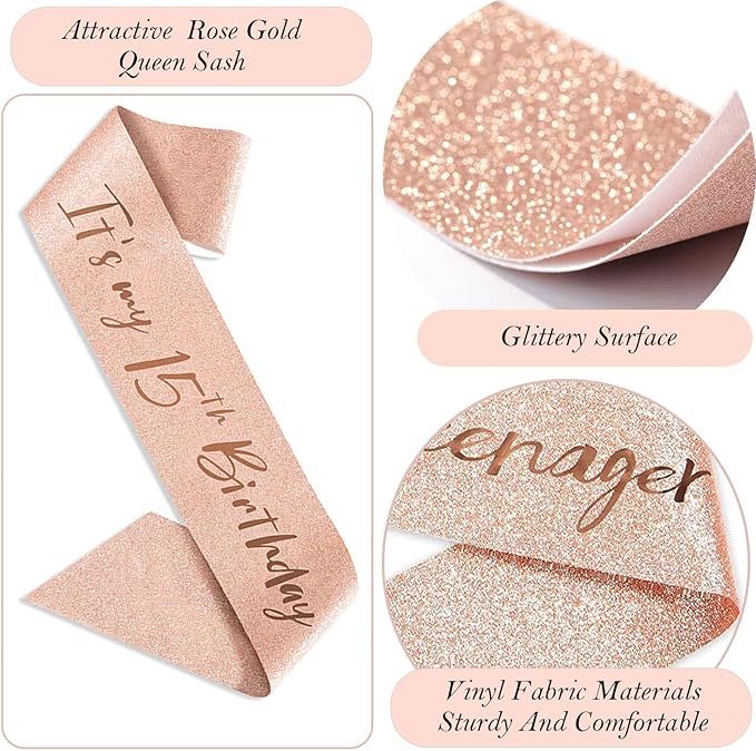 - Birthday Girl Sash: Our 15th birthday sash is made of high quality glitter fabric with foil “It’s my 15th birthday” lettering . The sash is in 61 inch length and comes with a gold charm pin that you can easily adjust the length you need.