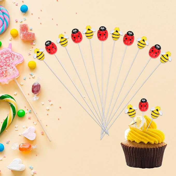 - 💖【No Assembly Required】: 24Pcs Bee Ladybug Cupcake Toppers can put in the cake directly! These 24Pcs Bee Ladybug Cupcake Toppers save your time and super easy to use. You can easily dress up your Horse theme cakes, yes! but don't stop there, put them into desserts, cookies, fruit pieces, appetizers, muffins and so much more!