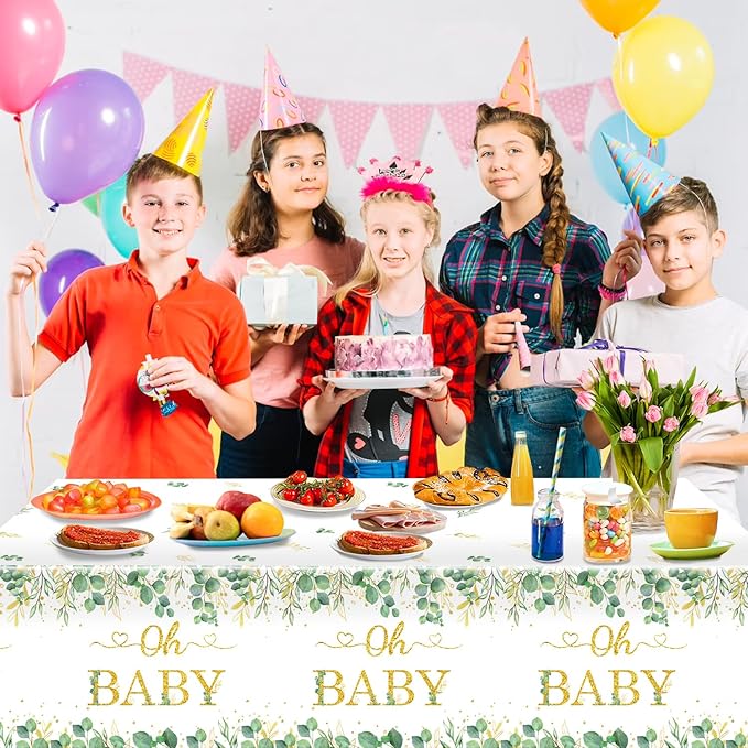 - 【Delicate Design】These baby shower sage green decorations tablecloths are designed with elegant "Oh Baby" , the exquisite green leaf and these sage leaves plastic, beautifully printed and colorful, decorating your table with this sage green baby shower decorations tablecloth will be a great choice.