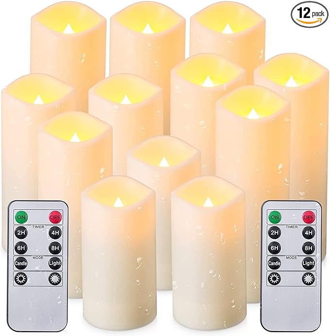 Flameless Candles with Remote & 2/4/6/8H Timers, Outdoor Indoor Waterproof Remote Candles Battery Operated, Electric Led Candles 12pcs for Home/Wedding Decor (D 2.2'' x H 4'' 5'' 6'' 7'')