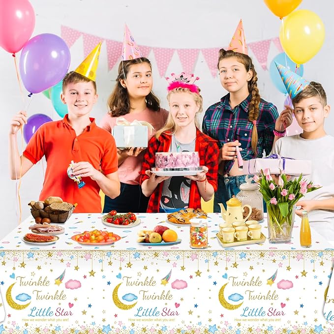 Oigco 3 Packs Twinkle Twinkle Little Star Gender Reveal Party Decorations Tablecloths,Pink Blue Little Star Gender Reveal Tablecloth for Baby Shower Supplies Girls or Boys Theme Party 54" x 108"