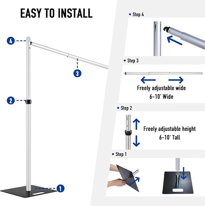 - [Quick installation] it can easily assemble background poles heavy duty frame + base + background in minutes without additional tools