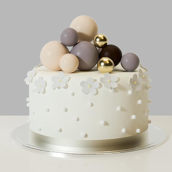 - Package includes: 32 pcs balls cake decorations with different colors and Sizes. They are gold, brown, dusty pink, Off white colors as picture showed, 8 pieces of each color.
