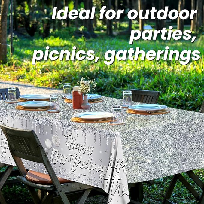 - Widely Used: Sliver happy birthday tablecloth is suitable for many occasions.Perfect for 16th 18th 21st 30th 40th 50th 60th 70th 80th birthday,men’s birthday,sliver theme party.It will be the perfect addition to the sliver theme party