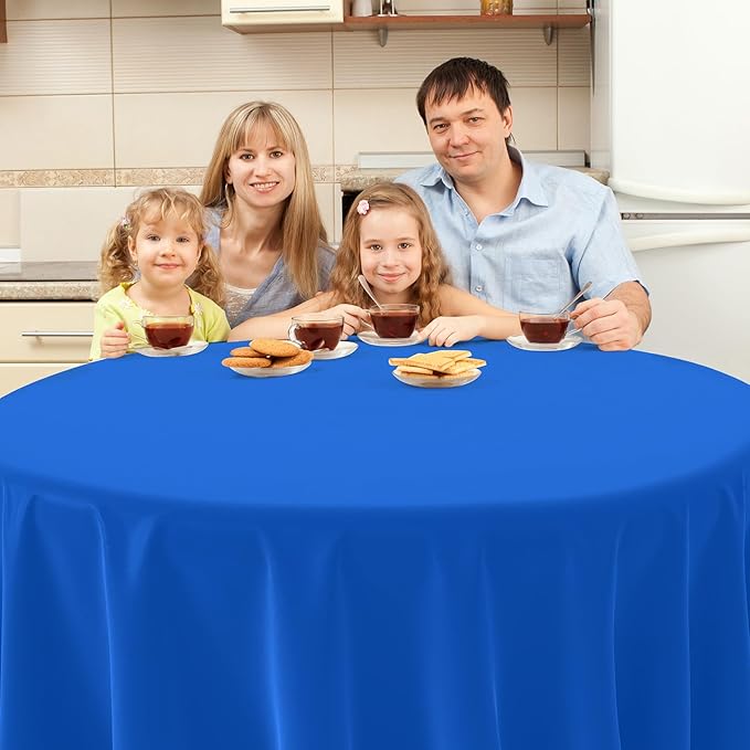 - About Size : these disposable round tablecloth each measures 84 inches,which fits for most 8-10 seats round tables,making it possible for you and your friend to enjoy the birthday party ,baby shower and rainbow themed party.