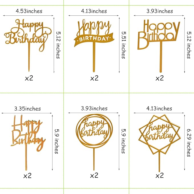 - Size: The Happy birthday cake toppers’ height is approx.5.1 - 6.3 inches, the width is approx. 3.4 - 4.5 inches. Ideal for 6-10” cakes.