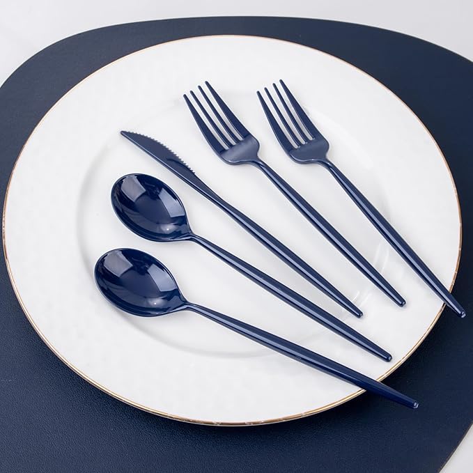 - [Easy To Clean]-If you want to have more time to enjoy the party, you can throw away the blue plastic silverware after the event, or you can hand wash the durable plastic silverware for next time.