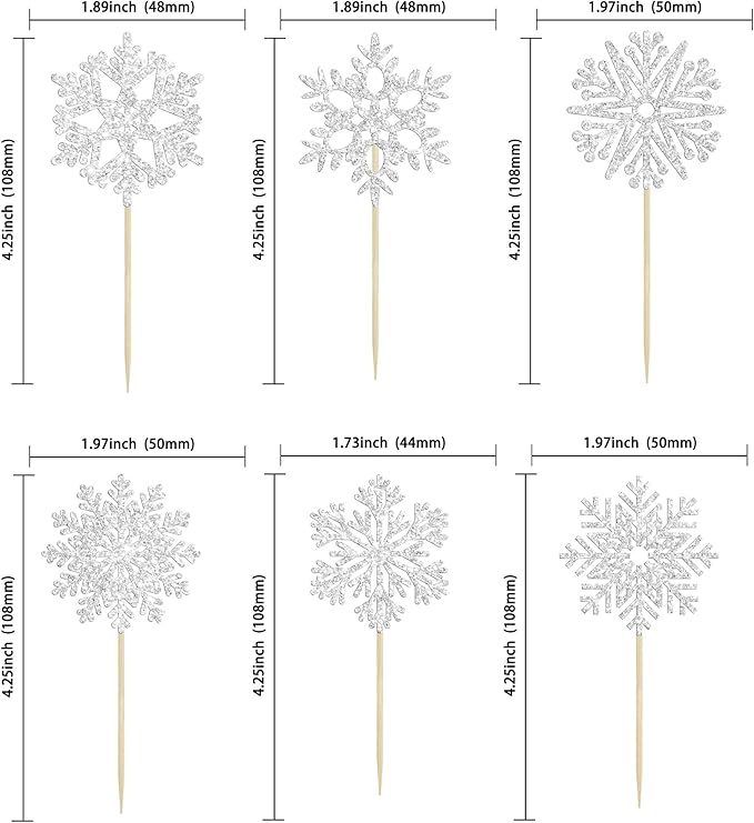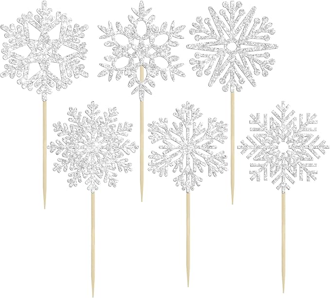 - 【NO Required】: 36Pcs Snowflake Cupcake Toppers can put in the cake directly! These Snowflake Cupcake Toppers saves your time and super easy to use. You can easily dress up your birthday theme cakes, yes! but don't stop there, put them into desserts, cookies, fruit pieces, appetizers, muffins and so much more!