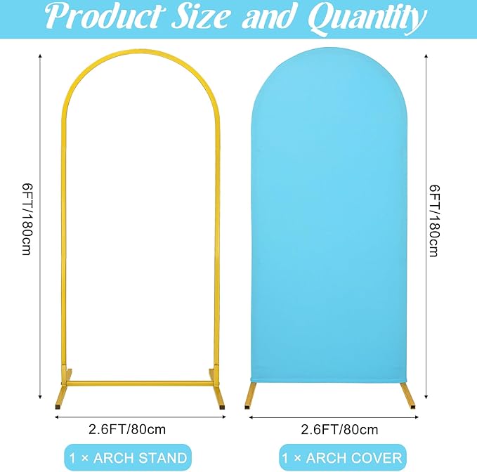 - 【Arch Backdrop Stand Set】You will receive a metal arch backdrop stand that is 6ft high and 2.6ft wide, as well as an arch backdrop stand cover of the same size and an installation manual.