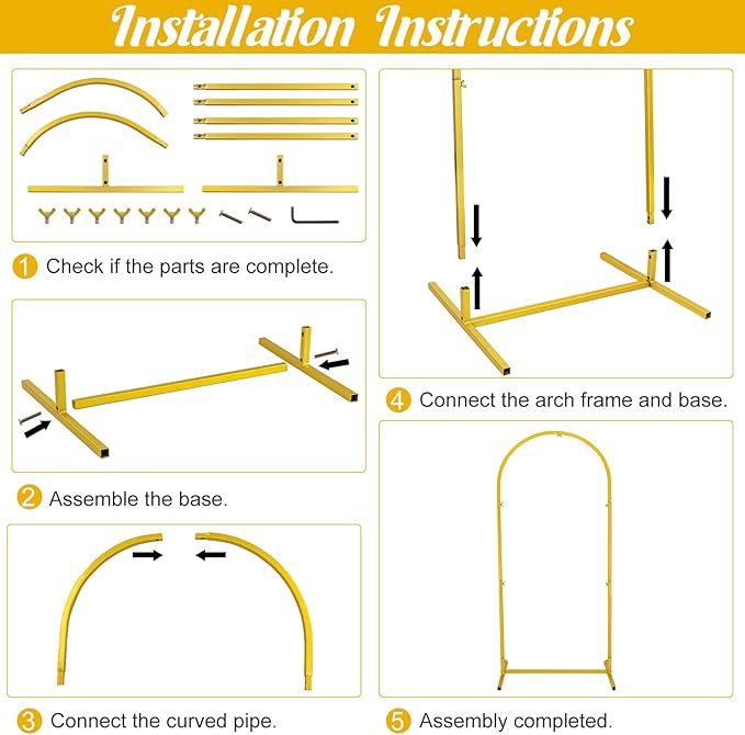 - 【Multiple Usage Scenarios】The arched frame can not only be paired with flowers, balloons, vines, etc., but can also be used with our arched frame cover to decorate various activities such as weddings, baby showers, birthdays, holidays, etc.