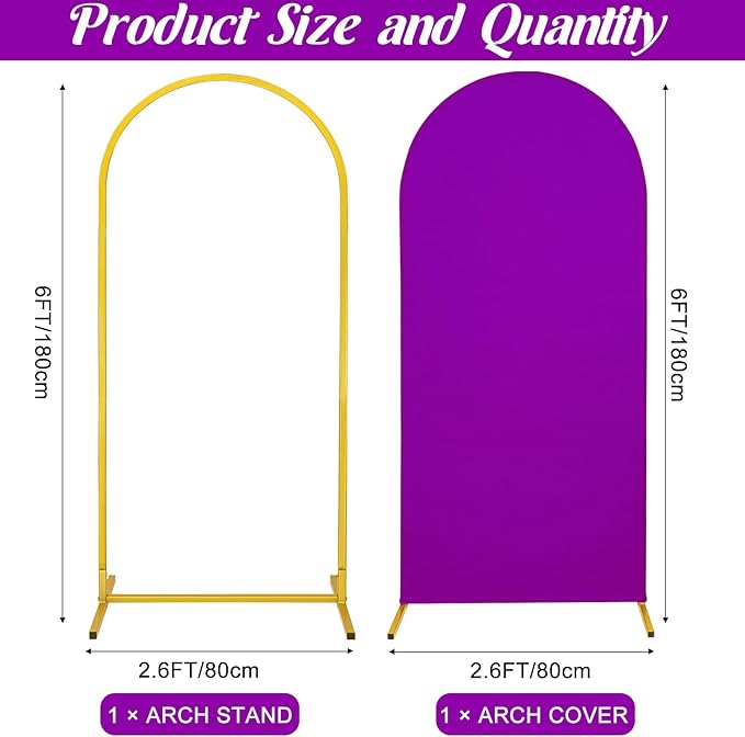 - 【Arch Backdrop Stand Set】You will receive a metal arch backdrop stand that is 6ft high and 2.6ft wide, as well as an arch backdrop stand cover of the same size and an installation manual.