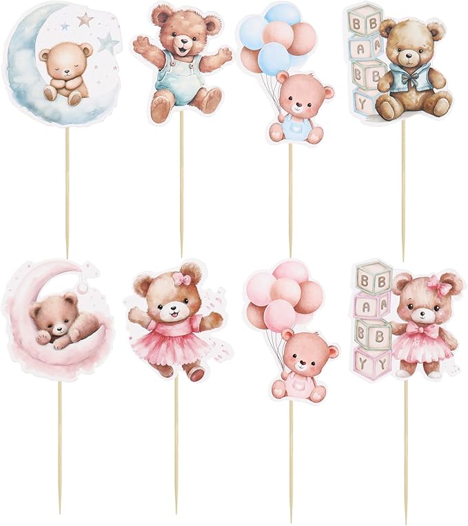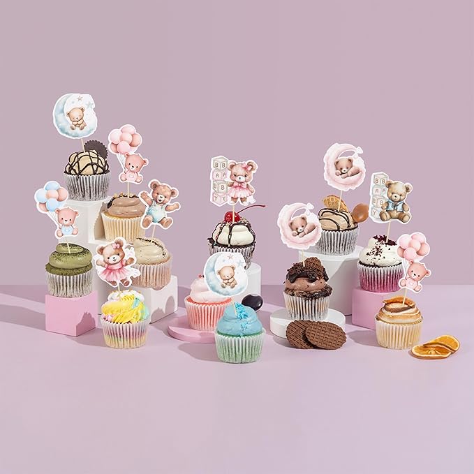 - --Bear Cupcake Toppers are so cute and good for baby bear theme party, gender reveal theme party, baby shower theme party, kids birthday theme party cupcake decorations.They can make your cupcake more attractive and bring the fun to your party. You can also apply them for ice cream, fruits, cookies and other desserts.