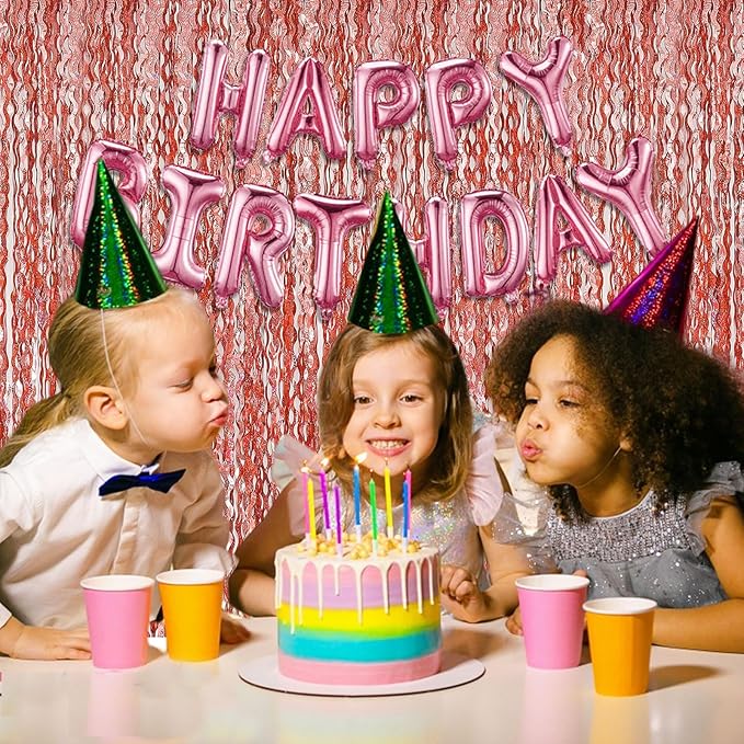 - Rose Gold Birthday Decorations:5 Pack, each curtains size is 3.28 ft x 6.56 ft, enough length foil fringe backdrops are perfect for the door, wall and table,feel free to cut to any length you want.