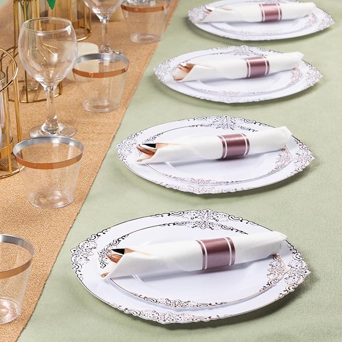- PERFECT FOR ANY OCCASION: These rose gold plastic silverware sets are suitable for wedding decorations, parties, dinners, get-togethers, birthdays, engagements, Valentine's Day, Christmas and other special anniversaries. Nothing adds sparkle to your party better than these disposable rose gold plastic cutlery.