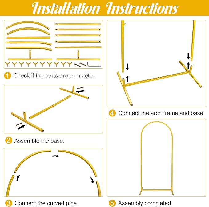 - 【Multiple Usage Scenarios】The arched frame can not only be paired with flowers, balloons, vines, etc., but can also be used with our arched frame cover to decorate various activities such as weddings, baby showers, birthdays, holidays, etc.