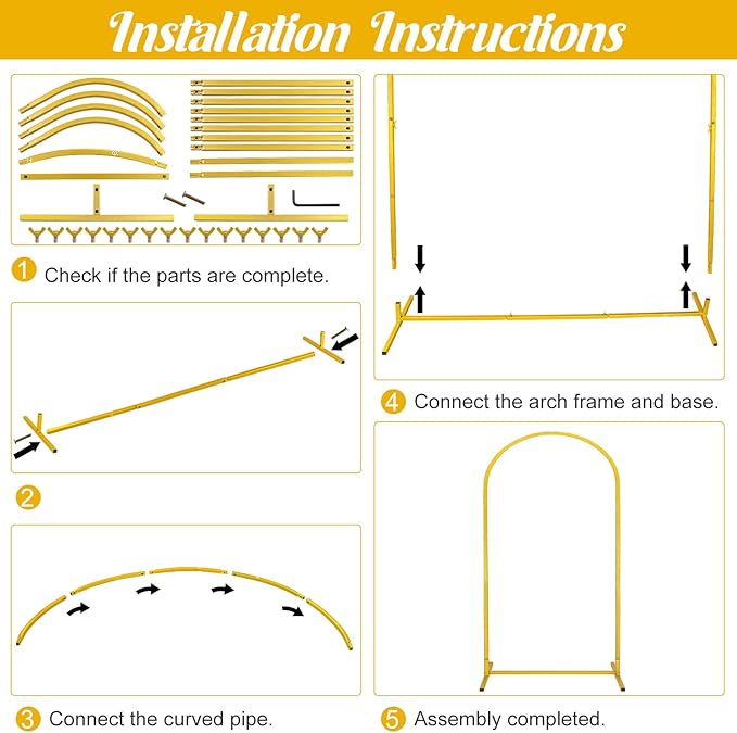 - 【Multiple Usage Scenarios】The arched frame can not only be paired with flowers, balloons, vines, etc., but can also be used with our arched frame cover to decorate various activities such as weddings, baby showers, birthdays, holidays, etc.