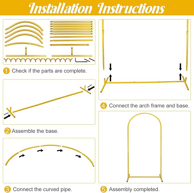- 【Multiple Usage Scenarios】The arched frame can not only be paired with flowers, balloons, vines, etc., but can also be used with our arched frame cover to decorate various activities such as weddings, baby showers, birthdays, holidays, etc.