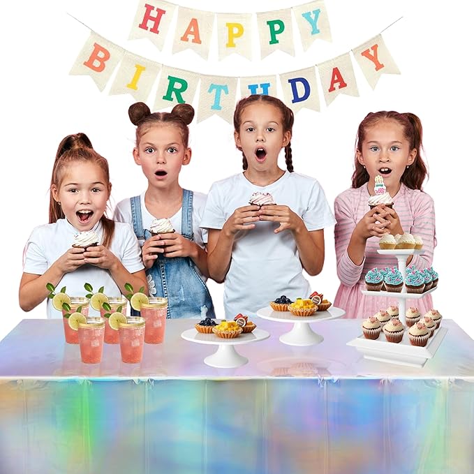 - The iridescent table cover fits for many theme party decorations, such as bachelorette party, wedding party, bridal shower, mermaid birthday decorations, frozen birthday party decorations, iridescent party decorations, undersea party decorations, Ocean Theme Decorations. The disposable tablecloth is also for many outdoor activities, such as Picnic, Camping, Patio bbq theme Decorations.