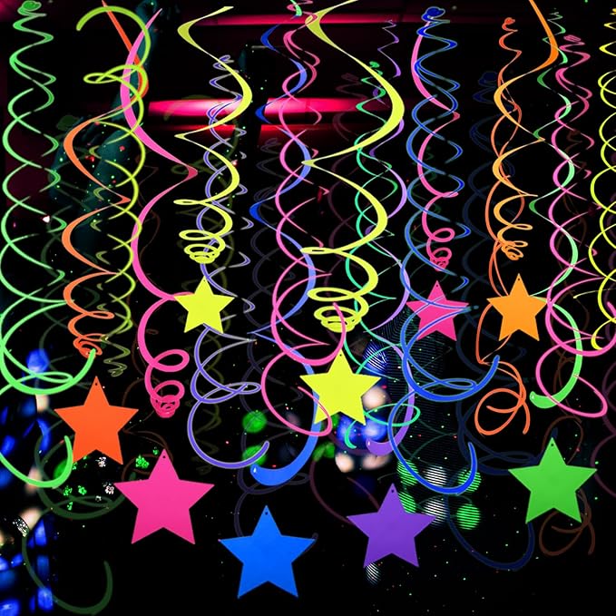 - 【What you can GET 】 Package Include: 56 PCS neon swirls streamers(28pcs Star neon streamers + 28pcs Neon party swirls)