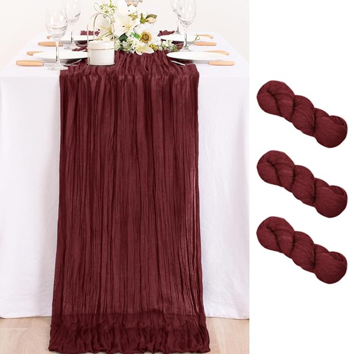 MLMC 3 Pack Burgundy Red Table Runner 10ft Rustic Gauze Wine Red Cheese Cloth Table Runner Cheesecloth Centerpiece for Wedding Bridal Shower Anniversary Events Christmas Valentine's Day Decor