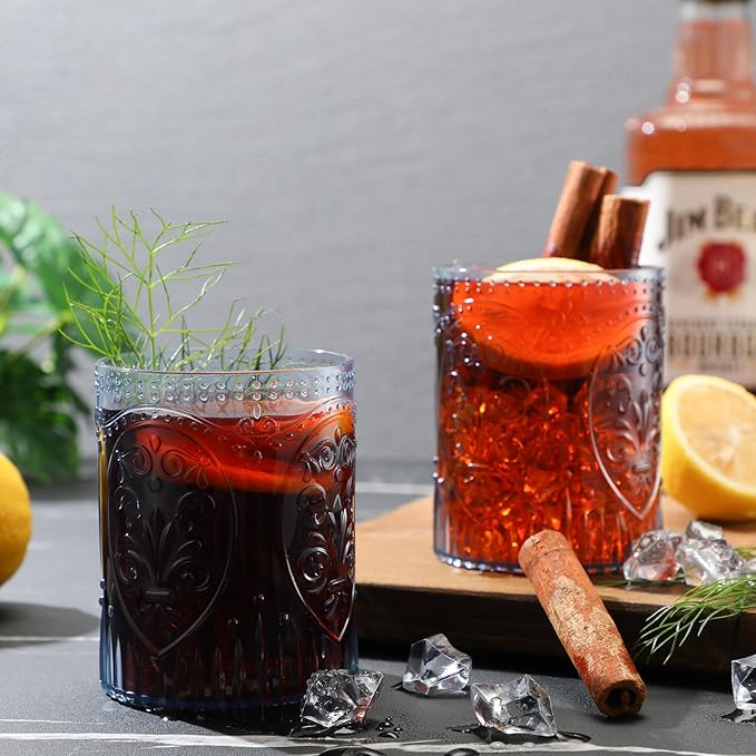 - Quality Material: the embossed drinking glasses are made of plastic material offer the beauty of glass without the risk of breakage. They're sturdy, lightweight, and safe for daily use and party event, suitable for both indoor dinners and outdoor celebrations. (Not recommended for hot water)