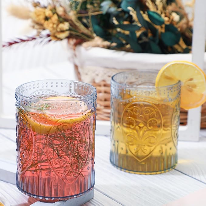 - Size Specification: With a 2.8 inch /7 cm mouth diameter and 3.5 inch / 9 cm height, these 8.5 oz / 250 ml vintage drinking glasses strike the ideal balance between form and function. The embossed texture and clear finish bring timeless grace to your everyday beverage ritual