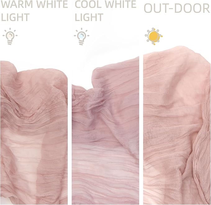 - [Soft Material]: Nude pink cheesecloth table runner is made of high quality polyester, soft to the touch and the cheesecloth fabric make the table runner sheer enough to swaying in the wind.