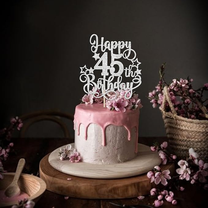 - Wide Usages ! The cake topper is perfect for happy 45th birthday theme party, cheers to 45 years theme party, 45 fabulous theme party, happy 45th birthday anniversary theme party cake decorations, they can make your cake more attractive and bring the fun to your party.You can also apply them for ice cream, fruits, cookies and other desserts.