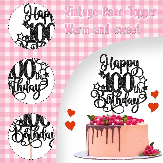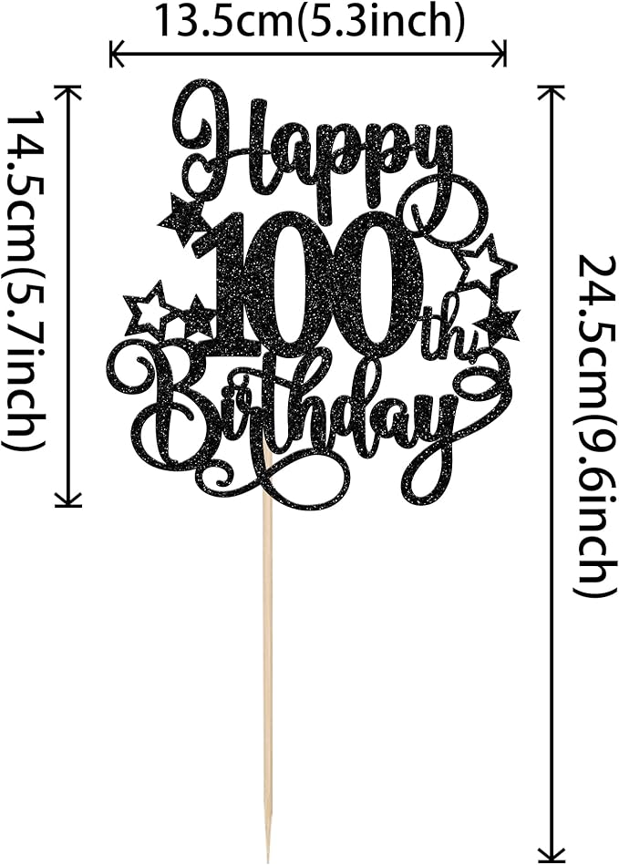 - Wide Usages ! The cake topper is perfect for happy 100th birthday theme party, cheers to 100 years theme party, 100 fabulous theme party, happy 100th birthday anniversary theme party cake decorations, they can make your cake more attractive and bring the fun to your party.You can also apply them for ice cream, fruits, cookies and other desserts.