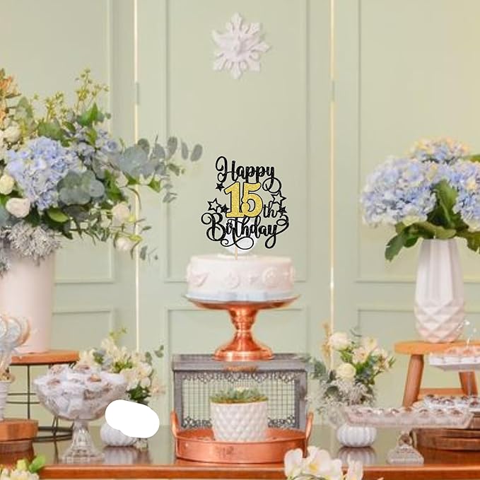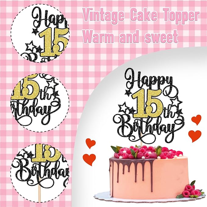 - Wide Usages ! The cake topper is perfect for happy 15th birthday theme party, cheers to 15 years theme party, 15 fabulous theme party, happy 15th birthday anniversary theme party cake decorations, they can make your cake more attractive and bring the fun to your party.You can also apply them for ice cream, fruits, cookies and other desserts.