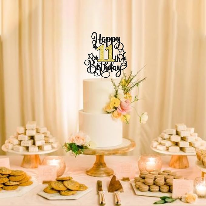 - Wide Usages ! The cake topper is perfect for happy 11th birthday theme party, cheers to 11 years theme party, 11 fabulous theme party, happy 11th birthday anniversary theme party cake decorations, they can make your cake more attractive and bring the fun to your party.You can also apply them for ice cream, fruits, cookies and other desserts.