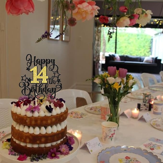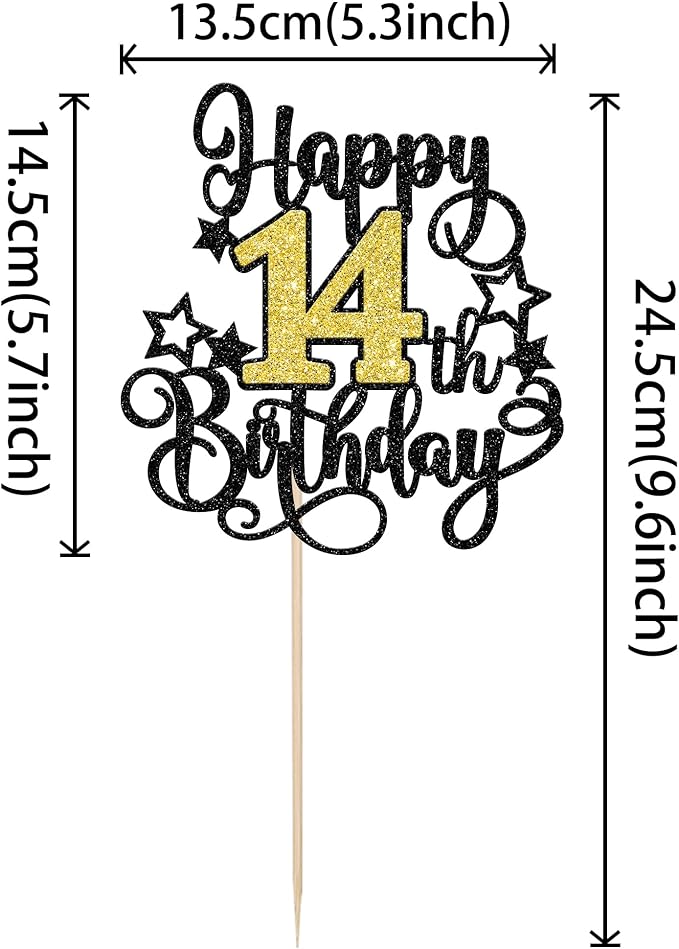 - Wide Usages ! The cake topper is perfect for happy 14th birthday theme party, cheers to 14 years theme party, 14 fabulous theme party, happy 14th birthday anniversary theme party cake decorations, they can make your cake more attractive and bring the fun to your party.You can also apply them for ice cream, fruits, cookies and other desserts.