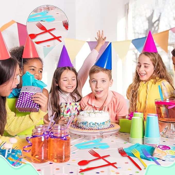 - Multi-Functional Rainbow Party Cutlery: Perfect for a variety of occasions such as Christmas, New Year, weddings, parties, holiday celebrations, birthdays, baby showers, bridal showers, picnics, barbecues, camping, restaurants, bars, hotels, bakeries, and everyday home use. Our rainbow party cutlery set is a fantastic choice for adding vibrancy and style to a wide range of events, including rainbow-themed parties, birthdays, barbecues, and more. Let the bright colors elevate your celebration atm